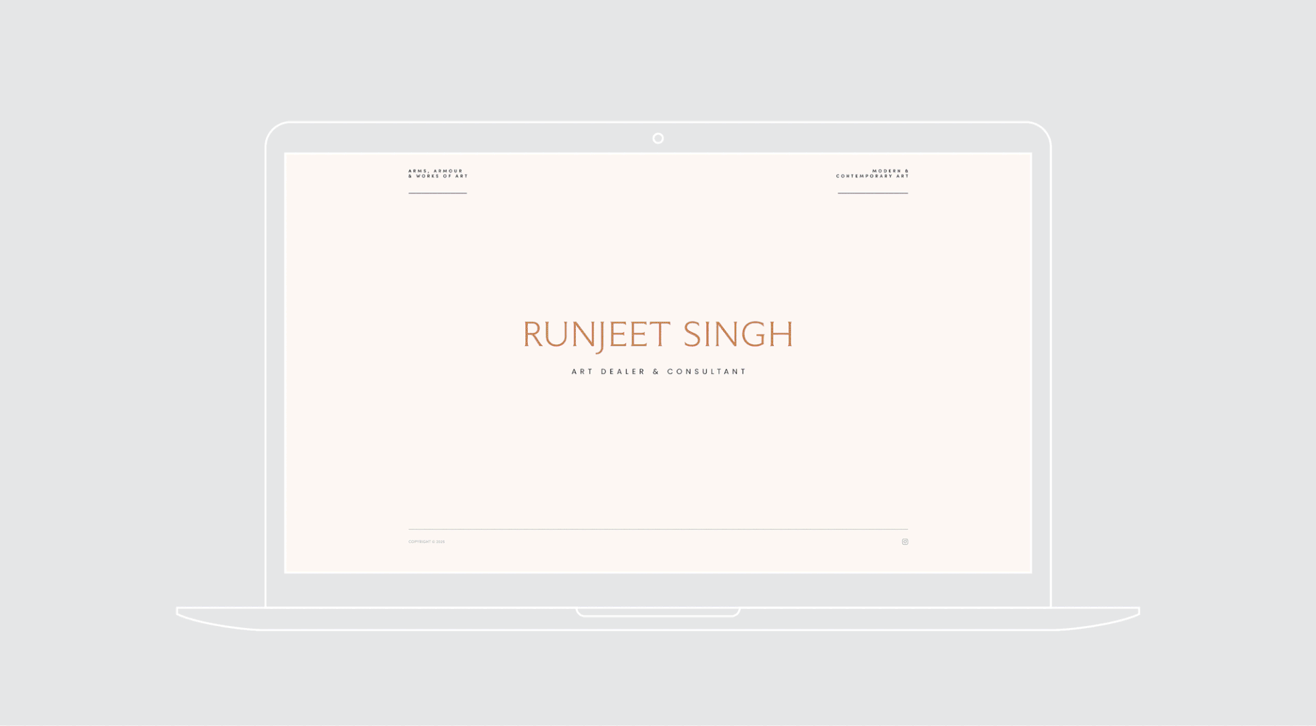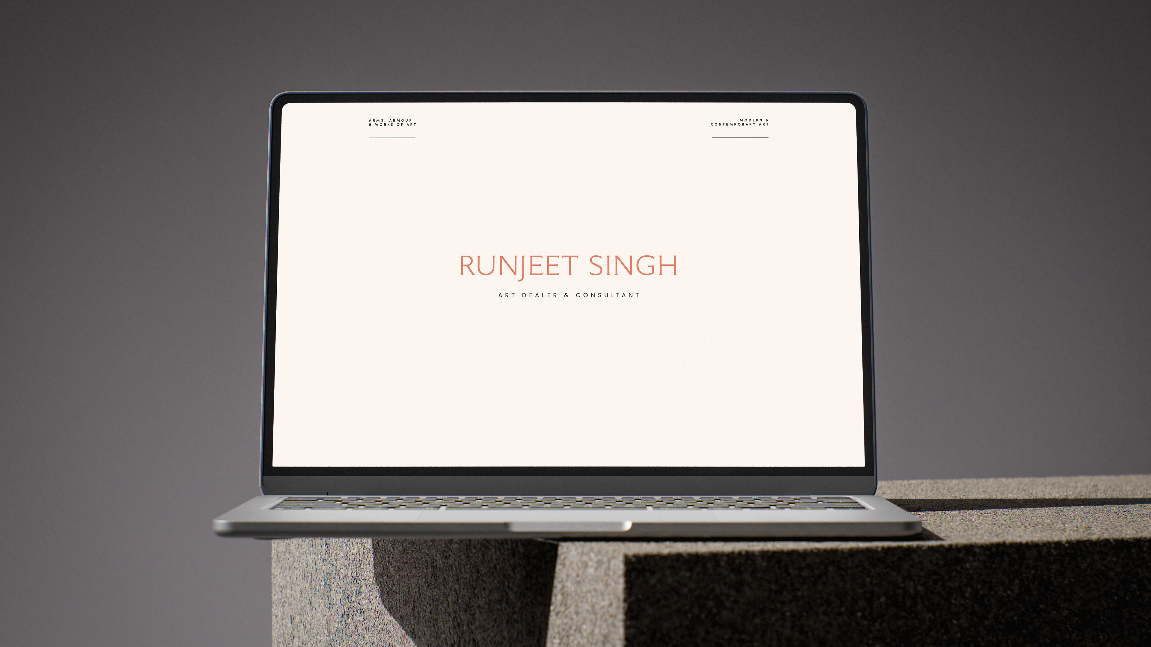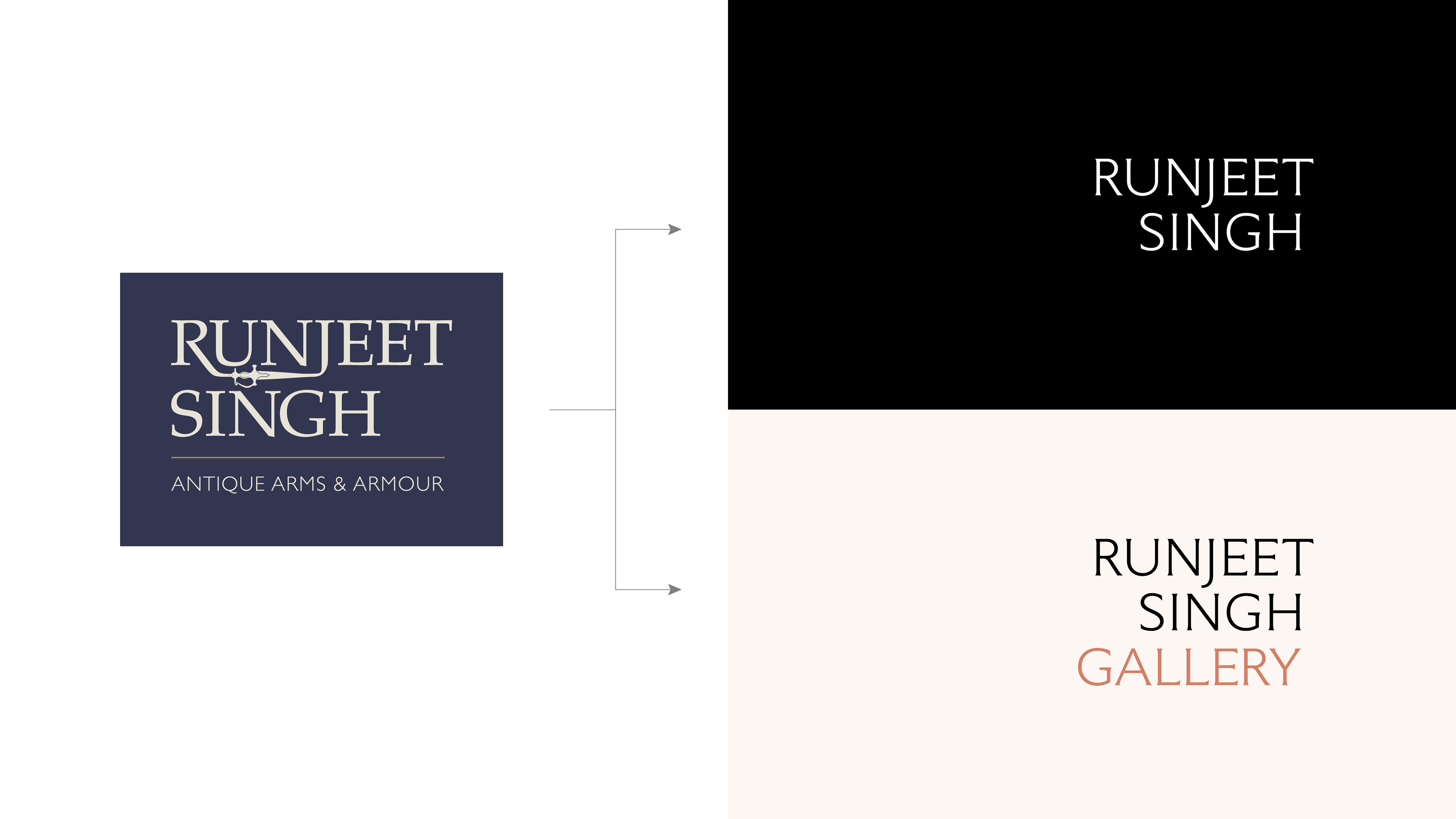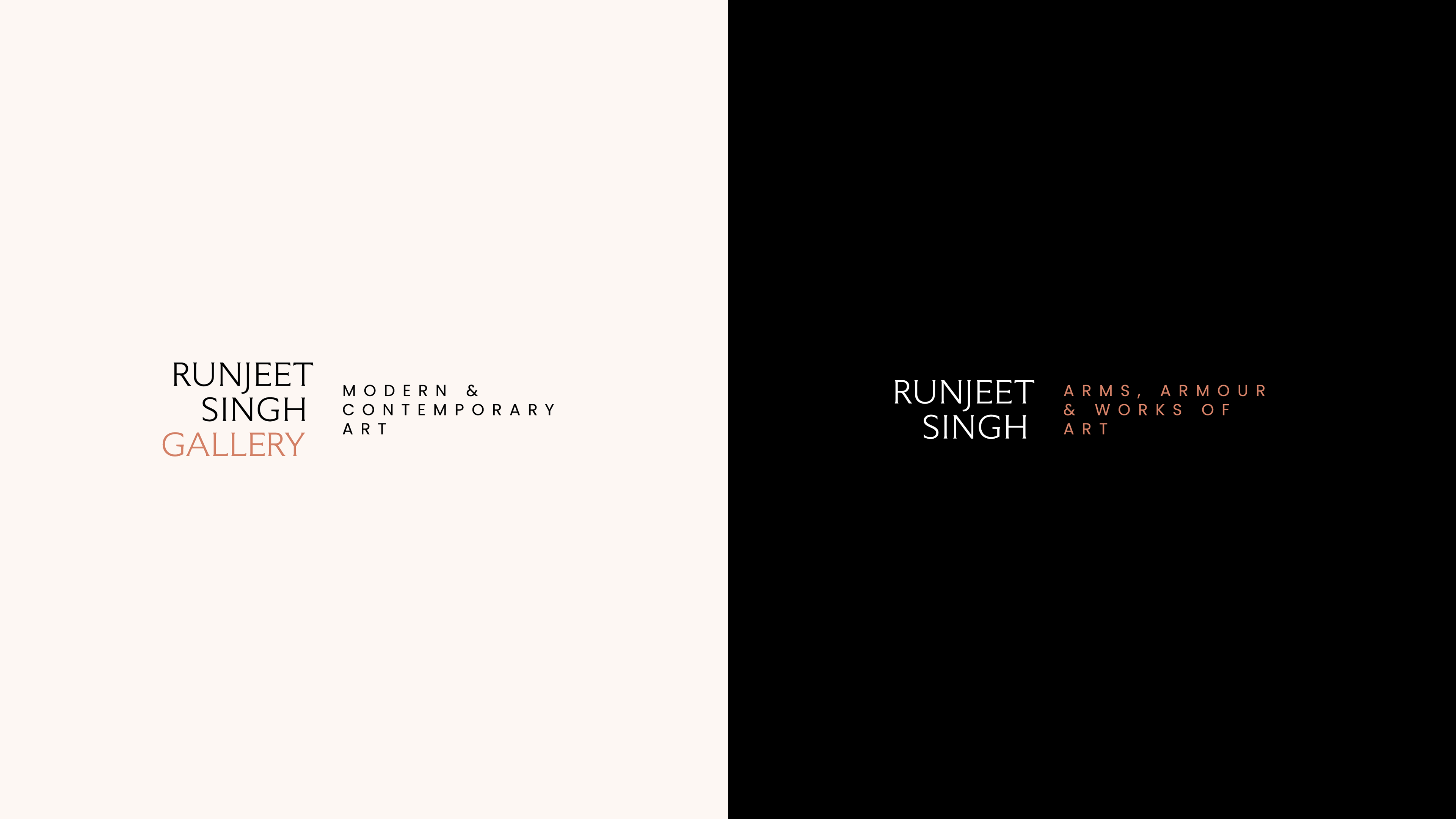 Runjeet expanded the scope of his antiques business to include modern and contemporary art. Although both arms are dealing in art, he wanted to keep the two sides fairly separate. This required a rebrand to reflect his new direction, whilst holding onto the trust and acclaim he has in the world of arms & armour.