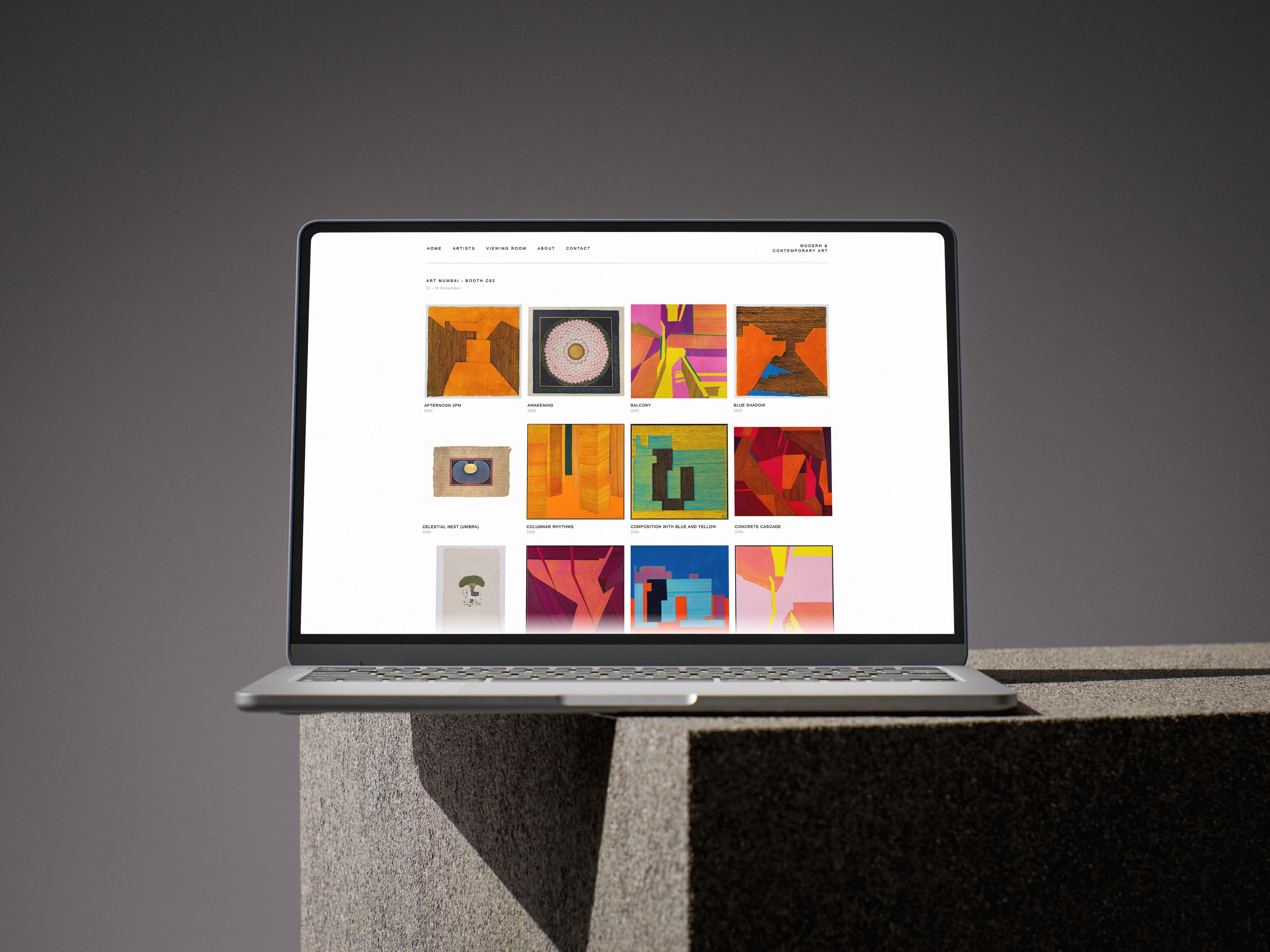 To further differentiate the two companies, I used colour to communicate which half of the collection they are looking at. We opted for darker backgrounds for 'Arms, Armour & Works of Art', to help highlight the beautiful materials used to build the weapons. To contrast this we used light, often white, backgrounds for 'Modern & Contemporary Works of Art', providing a neutral backdrop to champion the paintings.